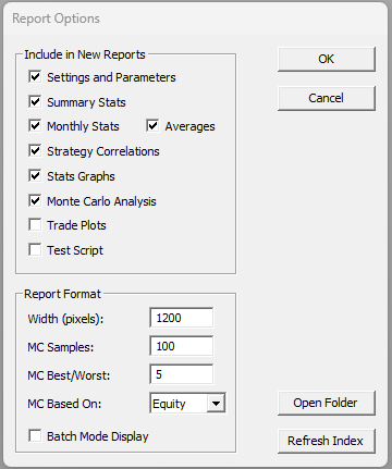 The Report Options dialog is accessible via the View Menu: