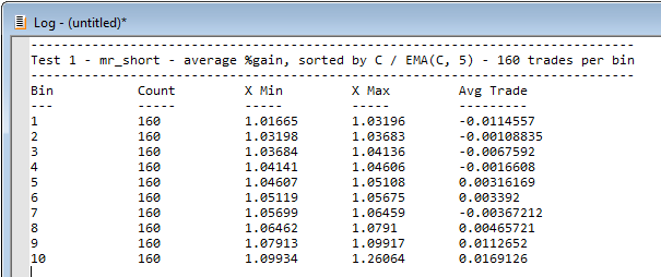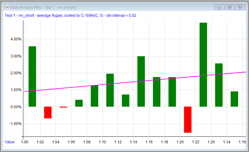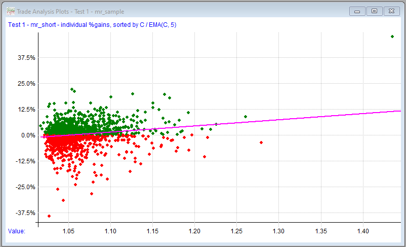 Here we've changed the plot to the mr_short strategy and sorted the results by the C / EMA(C, 5) formula: