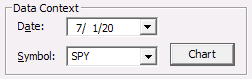 Specifies the symbol and most recent date to use for either showing a bar chart, showing underlying bar data, or evaluating a formula with data elements.