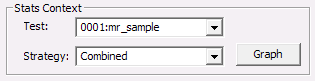 Specifies the test (from the set of tests in the currently active Results window) and strategy to use for either showing a stats graph, showing the underlying stats data, or evaluating a formula with stats elements.
