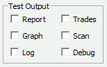 •Debug - opens the debug panel before closing end-of-test positions to allow full examination of the test context on the last date, and whether to show output from DebugEntry, DebugExit and DebugTargetStop statements (if any) in the script