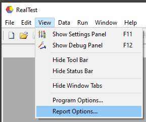 The Report Options dialog is accessible via the View Menu: