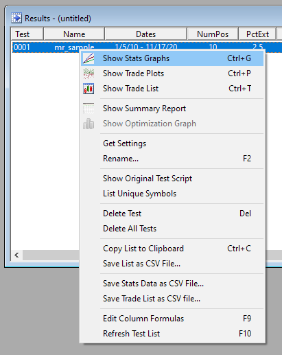 The remaining items control the user interface of the Results window.