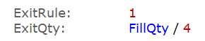 Navigation: Realtest Script Language > Syntax Element Details > FillQty Category Current Position Information Description Shares or contracts in current position at time of entry Notes For most positions FillQty will be the same as Shares. The only time these quantities can differ is after a partial exit. Partial exits can be specified using ExitQty, ExitLimitQty, and/or ExitStopQty. Indeed the main purpose of FillQty is to facilitate expression of partial exit quantities in the above formulas. For example to exit one fourth of the original position on each of the first four days after entry, simply write: Copyright © 2020-2026 Systematic Solutions, LLC