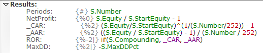 Calculating overall MaxDD percentage is a bit trickier, because it relies (when compounded) on knowing what the peak equity value was prior to the drawdown. This is handled internally, to always return the correct value in the S.MaxDDPct stat.