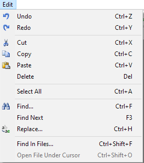 The Edit menu, as in most software, is used to do something with text in the active window.