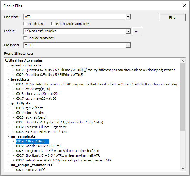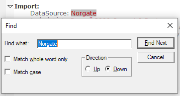 Double-click on any line of found text to open that file and highlight that instance of the text: