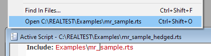 This provides a quicker way to open an included script, a file used in Import, etc. rather than having to select it using File / Open.
