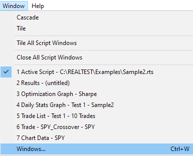 The Window menu is used to change the way child windows are displayed or to activate a specific child window.