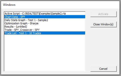 If you open more than 9 windows open and/or want to select several specific windows to close at once, open the Windows Dialog from the above menu or by pressing Ctrl+W.
