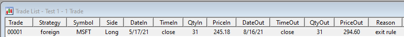 •T.FxIn - the exchange rate on the date of trade entry (can be optionally included in the trade list, as in the above example)