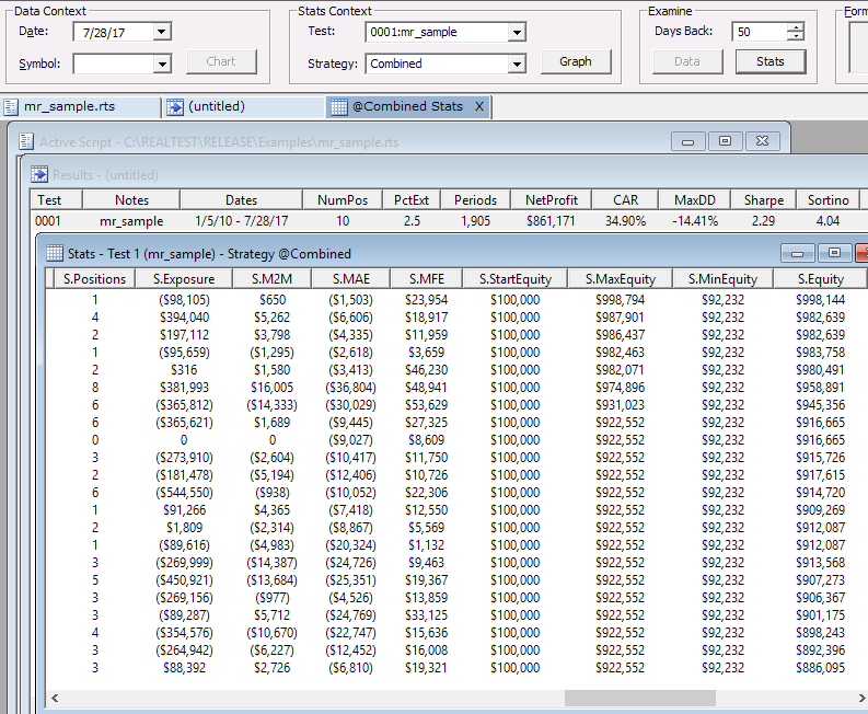 RealTest provides a large set of daily test stat variables which can either be used directly or combined in expressions to calculate any conceivable system metric.