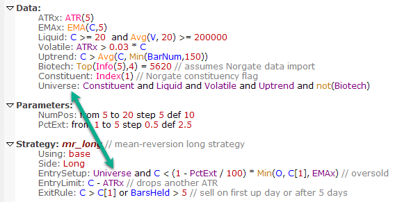 EntrySetup formulas can, at times, be rather complex. For this reason, it is highly recommended to make use of the Data Section for most of your entry condition logic. I will often have a series of data items that feed into a final one called something like "IsSetup", then just use EntrySetup: IsSetup.