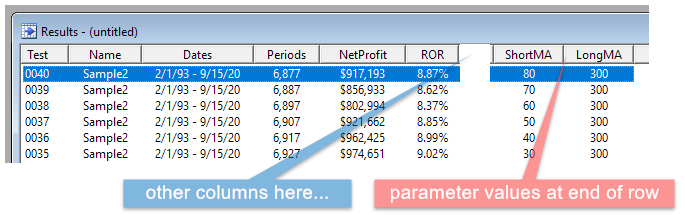Finally, if there were Parameter values in any test shown, those are displayed as the rightmost columns, as shown above.