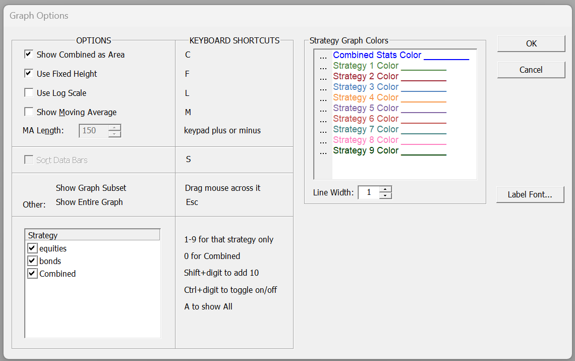 Most of the other options in this dialog can also be accessed using the Graph Menu and/or the keyboard shortcuts listed above and on the menu items.