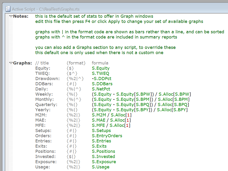 If the active script does not include a Graphs section, then the default script – Graphs.rts in the program directory – is applied.