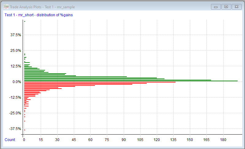 This gives a feel for the general distribution of trade results.