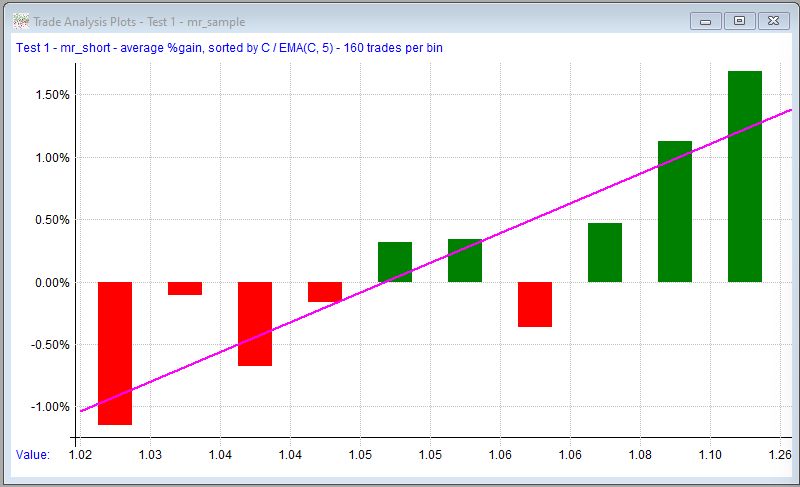 Here we've changed the plot to the mr_short strategy and sorted the results by the C / EMA(C, 5) formula: