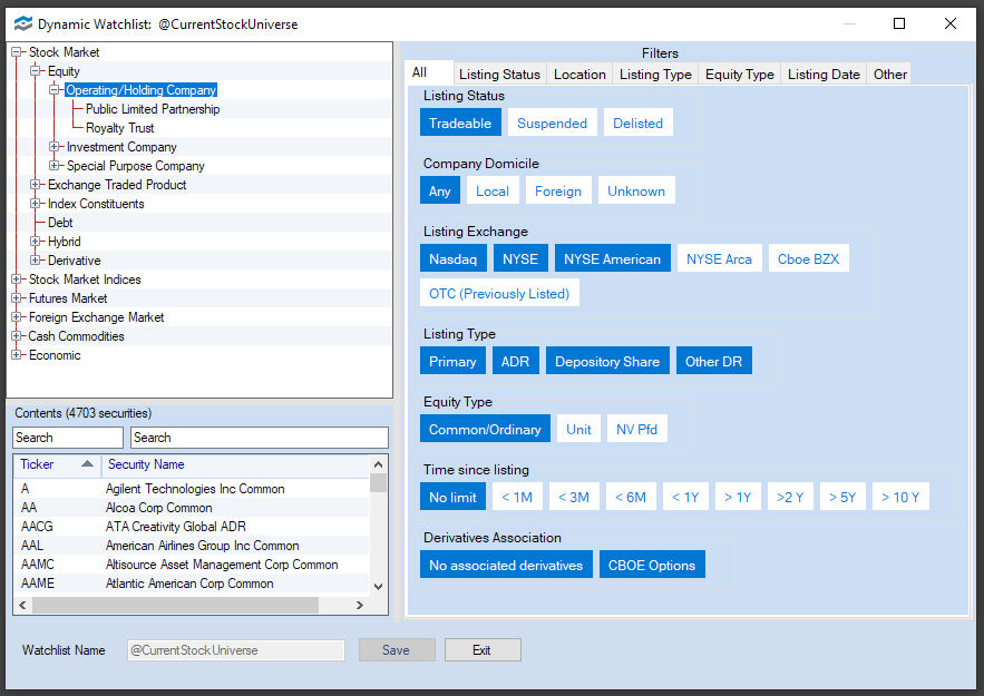 For example, I use the following Watchlist definition for my daily trading candidate scans: