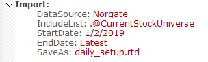 With Norgate import, each IncludeList in the Import script section can be any of the following:
