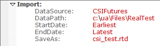 To use CSI data with RealTest, you must have downloaded and installed their Unfair Advantage software and subscribed to one of their futures data packages.