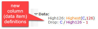 As a further speed optimization, calculated Data items persist in memory as long as the same data file is in use and their formulas (or the formulas of other items that they refer to) have not been changed. So if, for example, you're running a number of backtests using the same underlying data calculations and only varying, for instance, the exit parameters, that set of tests can run extremely quickly.