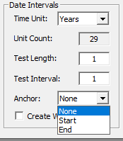 Anchoring the start date makes each interval larger than the preceding one, and anchoring the end date does the opposite.