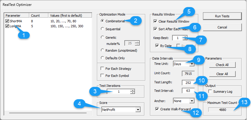 Now you are ready to press and let RealTest generate your walk-forward model.
