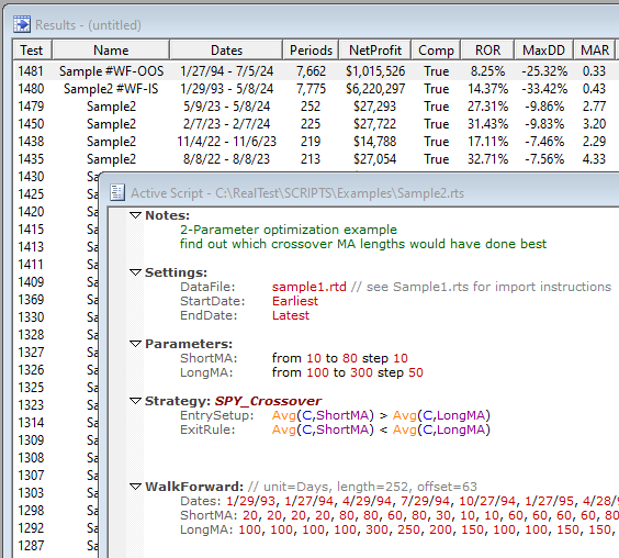 To introduce Walk Forward testing, let's return to the sample2.rts script used in Tutorial 2.