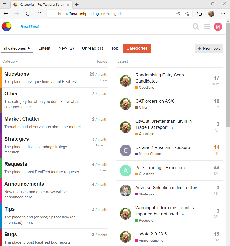 Besides being a place to give and receive help as you ascend the learning curve, the forum also includes lively discussion about trading strategy research ideas, the current market climate, and any number of other topics.